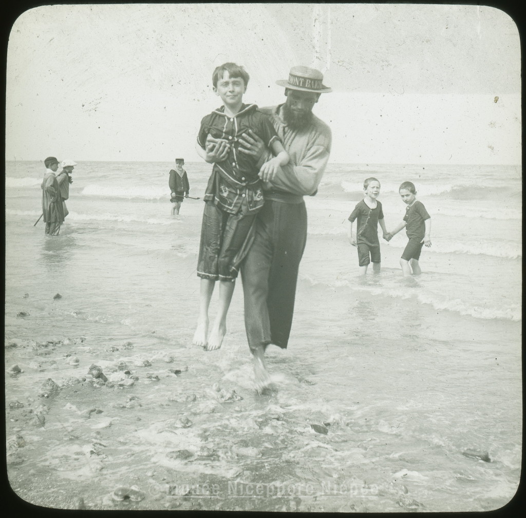 Scène de baignade sur une plage du Calvados