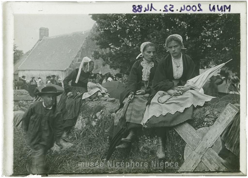 Bretonnes assises sur un muret un jour de Pardon (?)