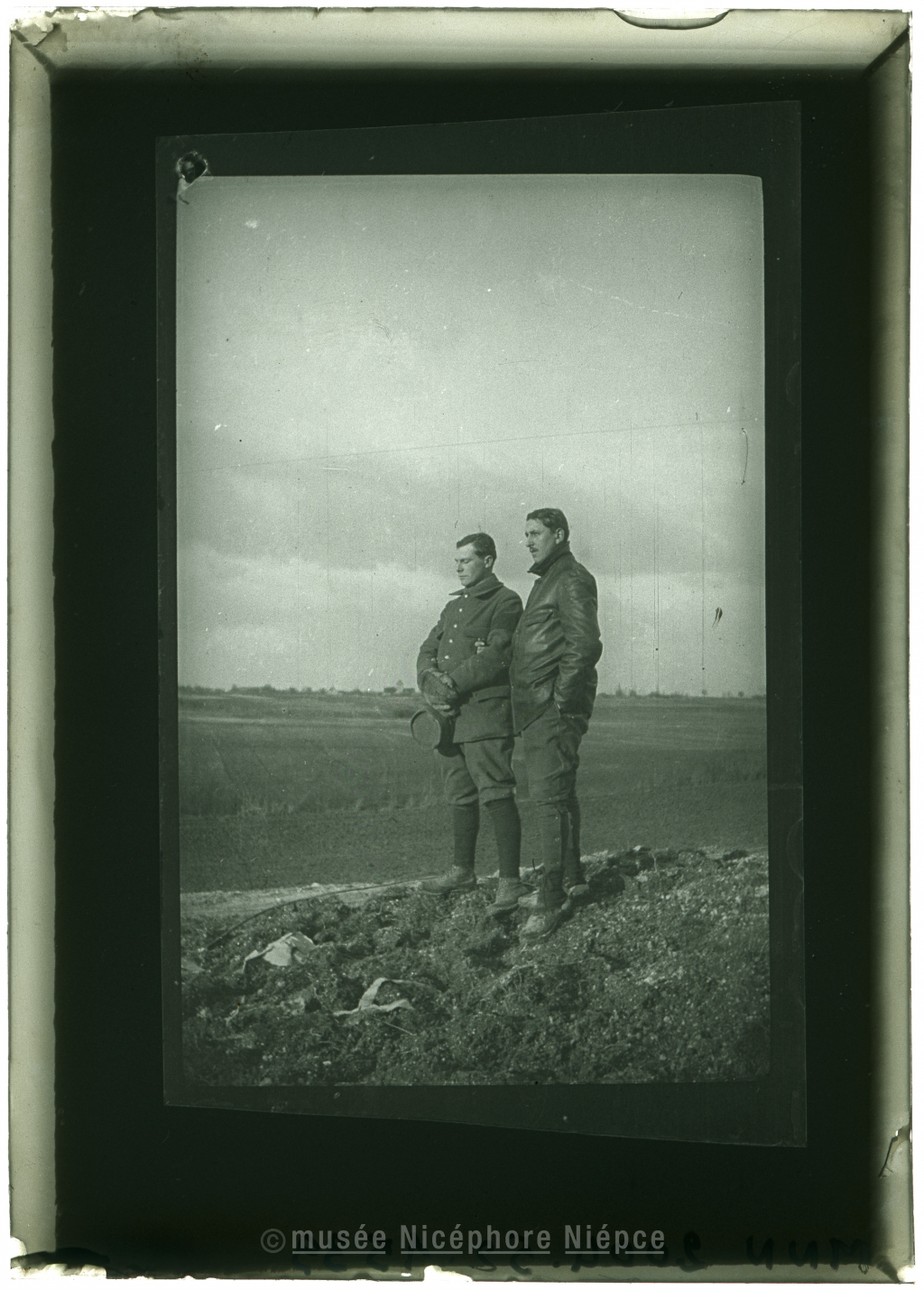 Deux militaires au front (positif obtenu par contact avec un négatif souple réalisé au front par Bob Demachy)