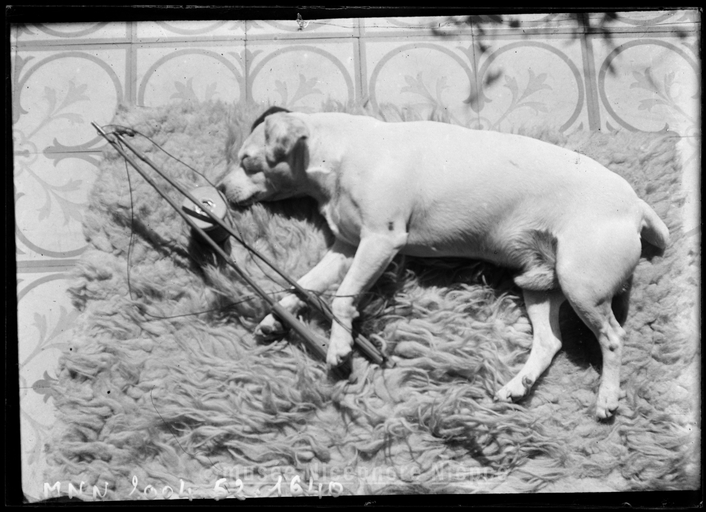 Chien couché sur la terrasse du château de San Carlo