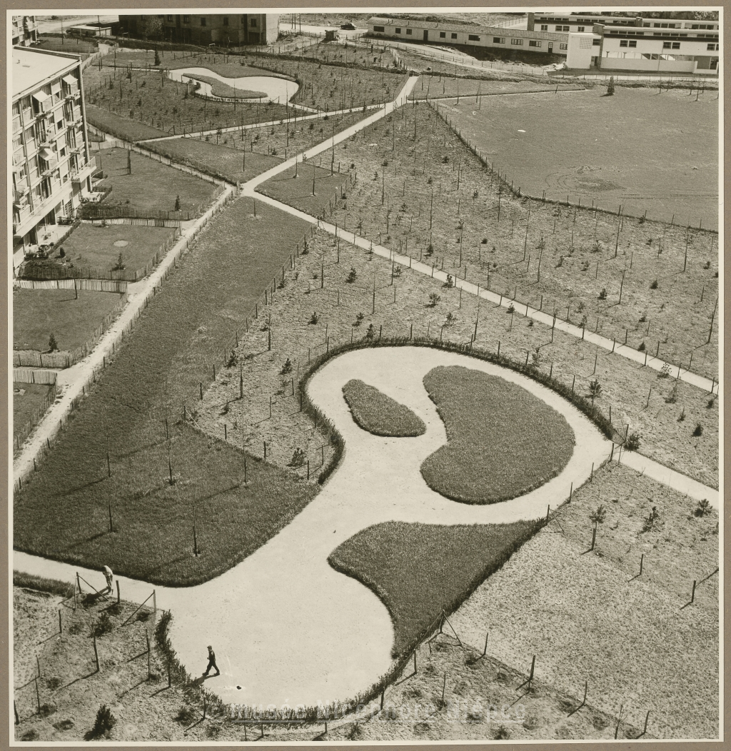 Quartier de l'Aubépin : premières plantations du parc 2 Mai 1958