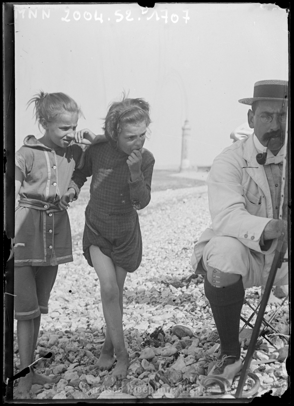 Peintre (M. Homère ?) observé par des enfants sur une plage