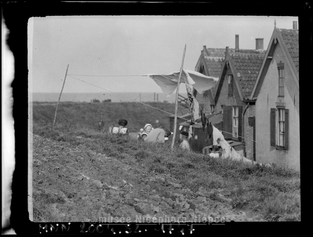 Jeunes hollandais dans un pré près de leurs maisons
