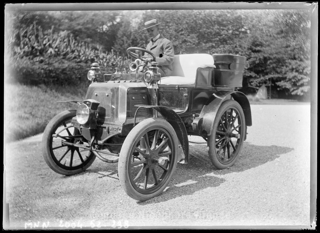 Automobile et son chauffeur dans la cour du château de San Carlo