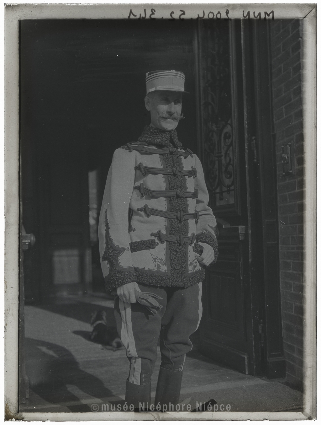 Portrait d'un homme en tenue militaire sur la terrasse du château