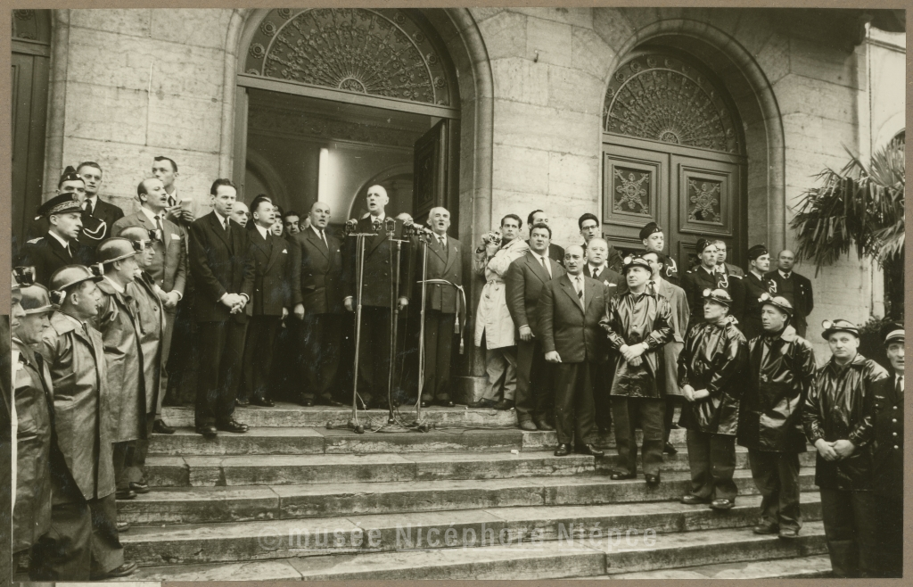 Le Gl de Gaulle s'adresse aux chalonnais du perron de l'Hôtel de Ville 18 avril 1959