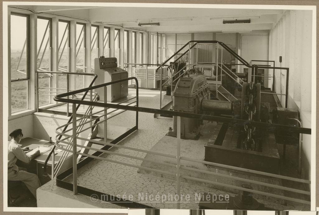 Ecluse de la dérivation du Canal du Centre : salle de commande des portes 8 juin 1959