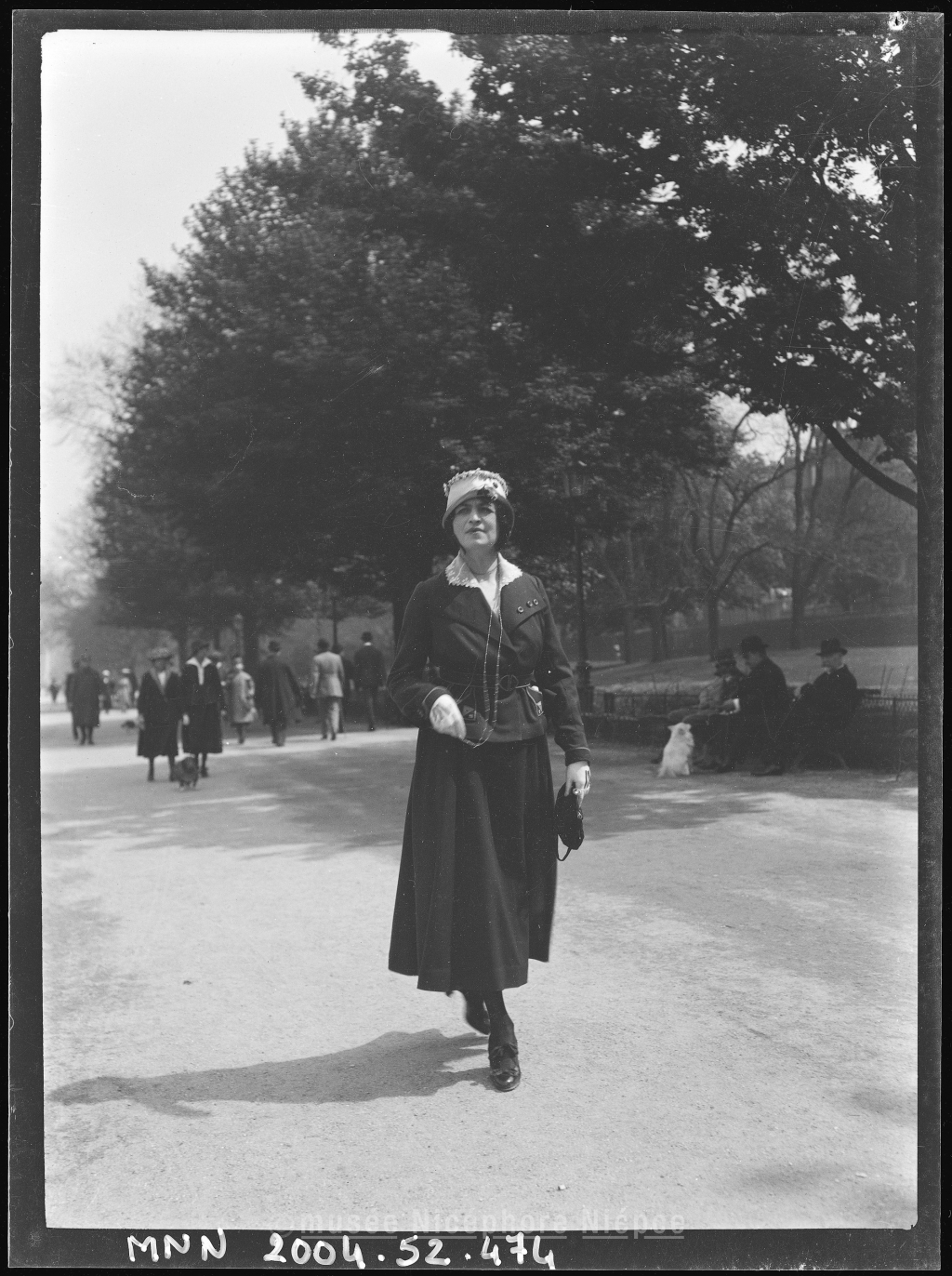 Jeune femme déambulant sur l'Avenue du bois de Boulogne (?)