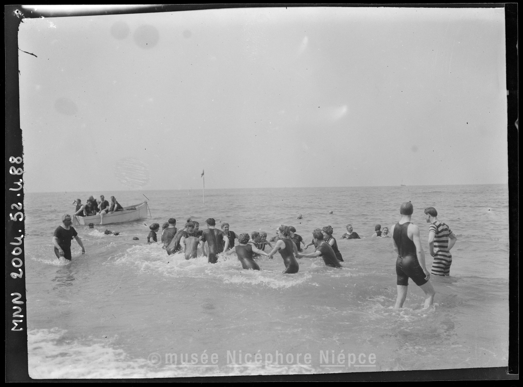 Scène de baignade sur une plage du Calvados