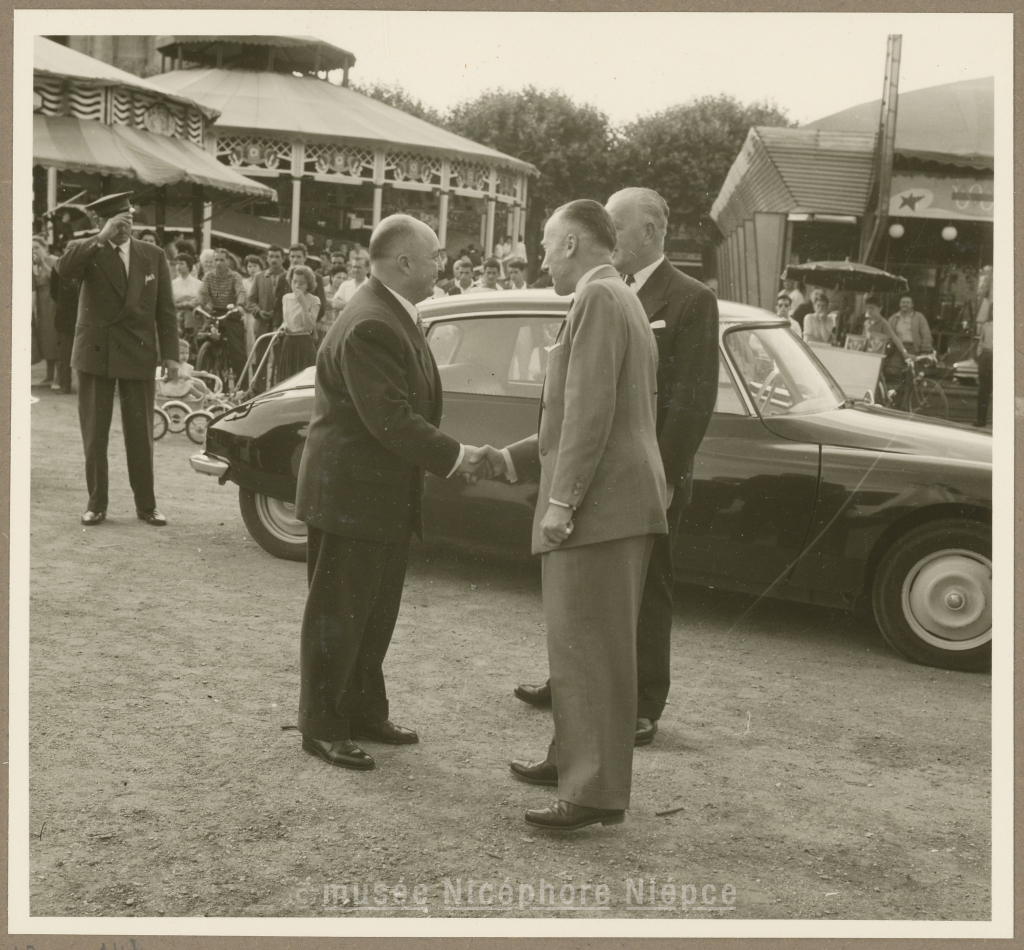 Chalon-sur-Saône - scène - foire - visite officielle - partie de - Gros Charles - poignée de main - manège - Charles GROS