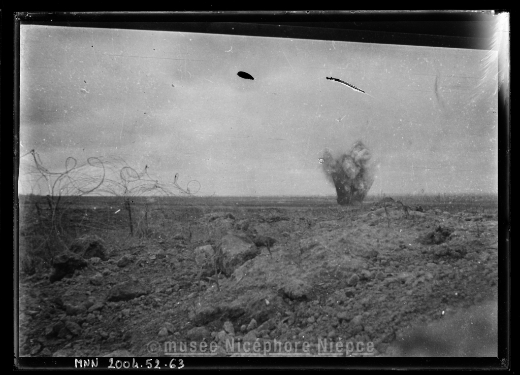 Une explosion au front (négatif obtenu daprès une photographie du front réalisée par Bob Demachy)