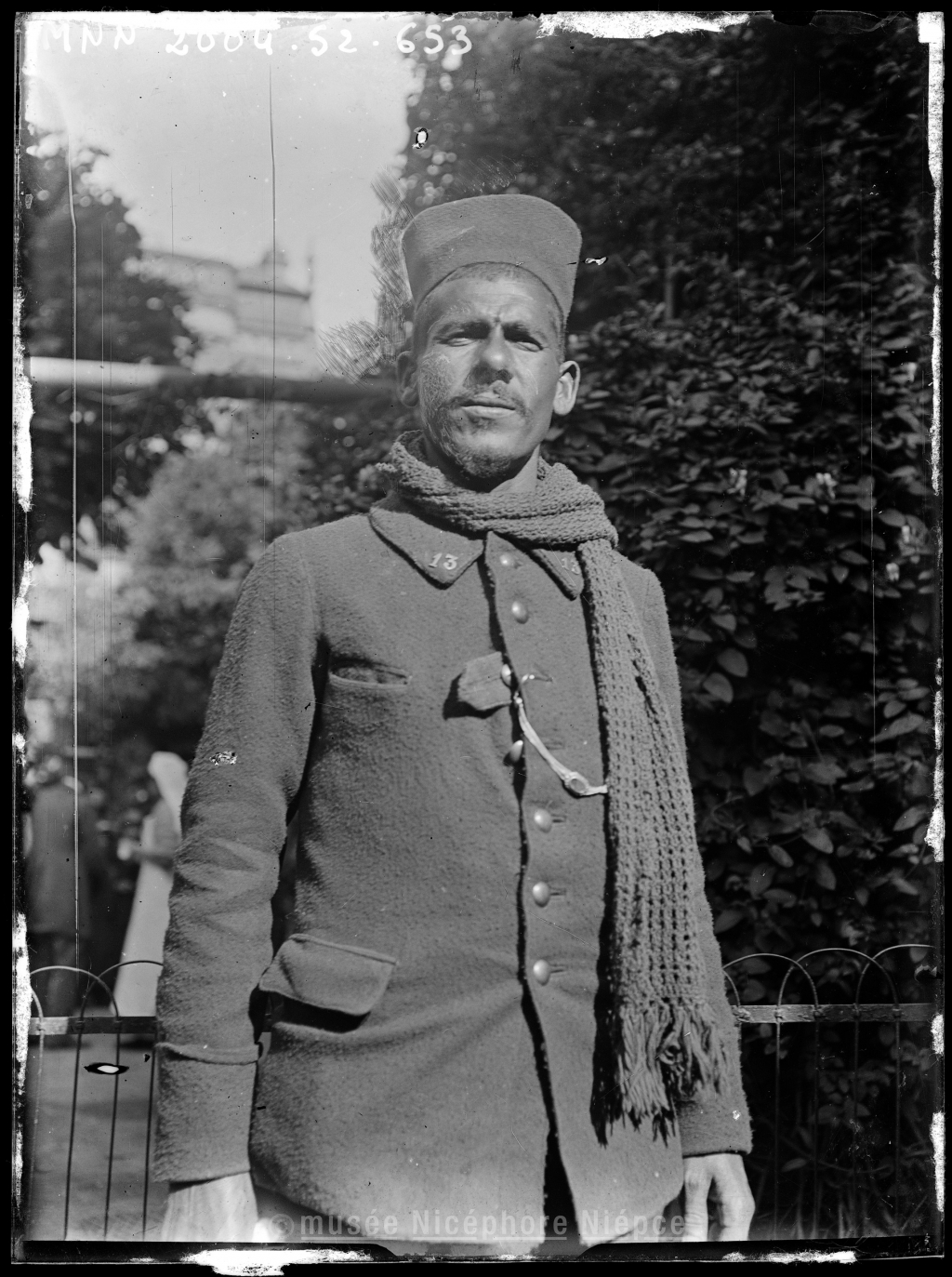 Portrait dun blessé dans la cour du dispensaire