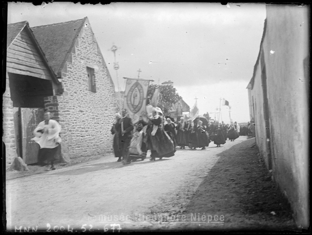 Procession religieuse dans un village breton