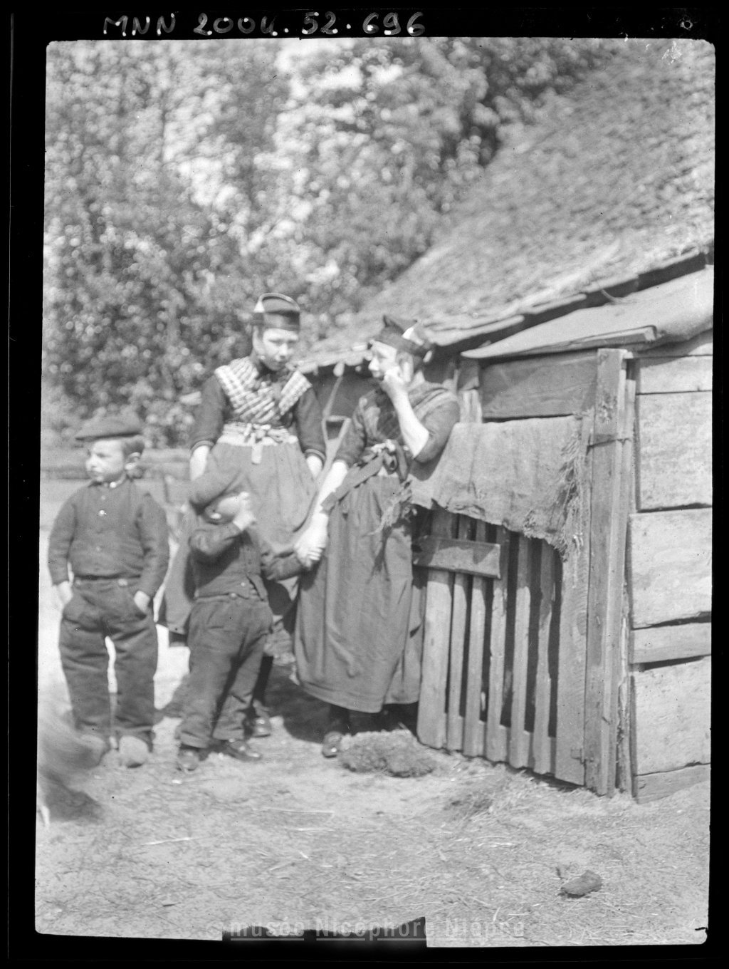 Quatre enfants à l'entrée d une propriété