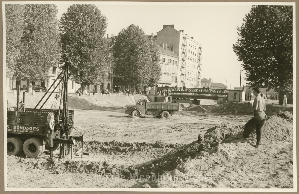 Comblement de l'écluse du pont des Fainéants : passerelle et pont tournant 12 octobre 1959