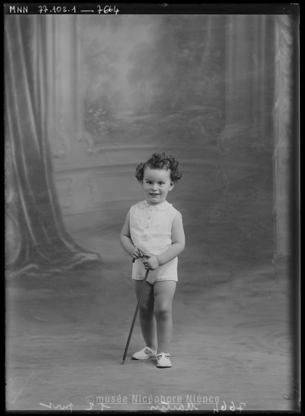 en pied - portrait - en pose - fillette - fond peint - canne - Germain EBLE
