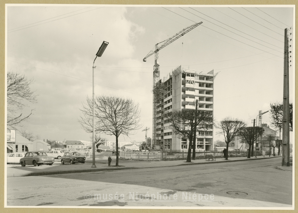 Quartier de la Verrerie : construction de l'immeuble - tour Février 1965