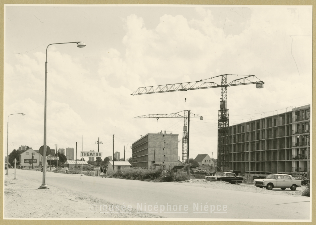 Quartier de la fontaine aux Loups : nouveaux immeubles, sur l'Avenue de Paris Octobre 1965
