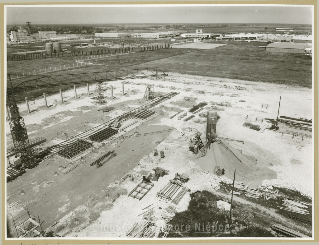 Vue de la grande zône Industrielle Nord-Est, prise le 13 juillet 1966, du haut du réservoir d'eau brute au 1er plan, les travaux de la future usine Pinette au 2ème plan, l'usine Kodak-Pathé et l'usine "Le Bouchage Mécanique" en direction de l'Est
