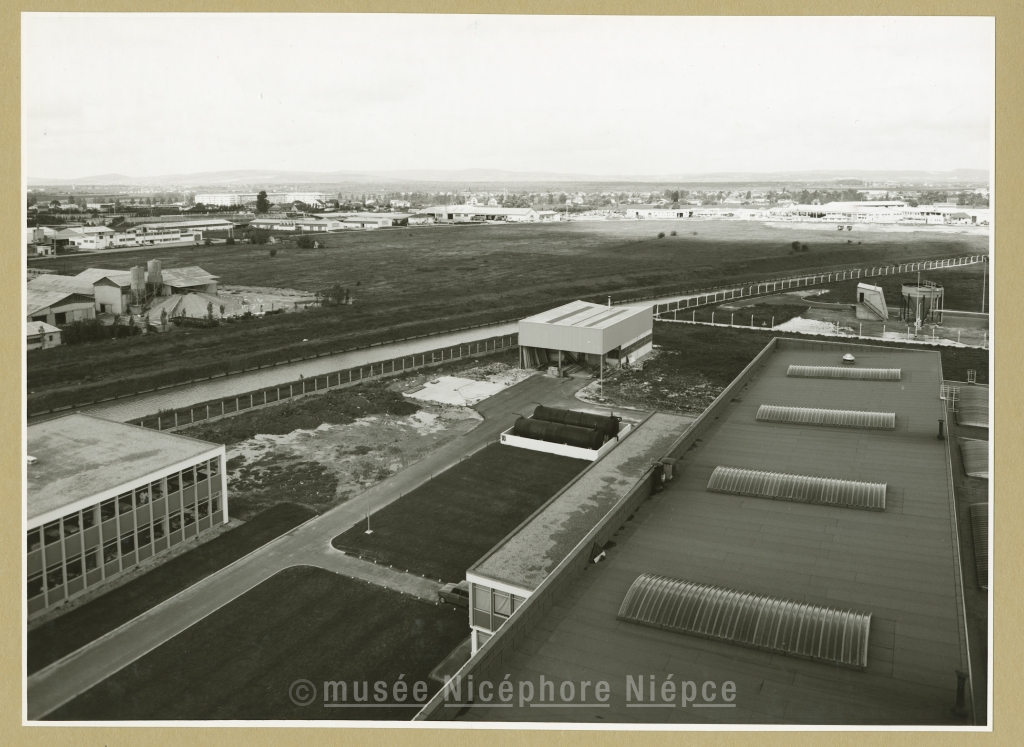La Zône Industrielle Nord-Est de Chalon-sur-Saône, vue en direction du Nord au 1er plan, usine Pinette-Emidecau en haut, à droite : garage Renault, entreprise Terrade Juillet 1968