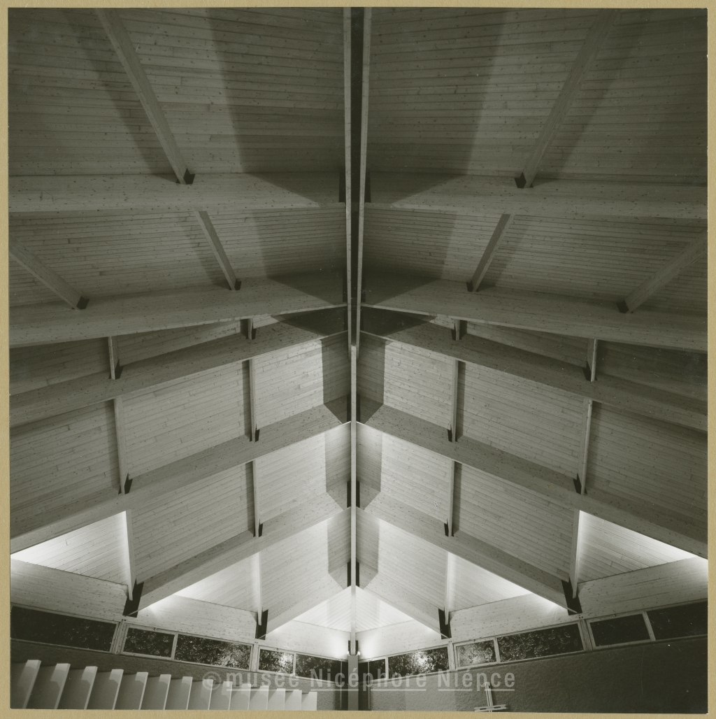 Eglise St Paul : détail intérieur de la toiture Fin Mai 1970