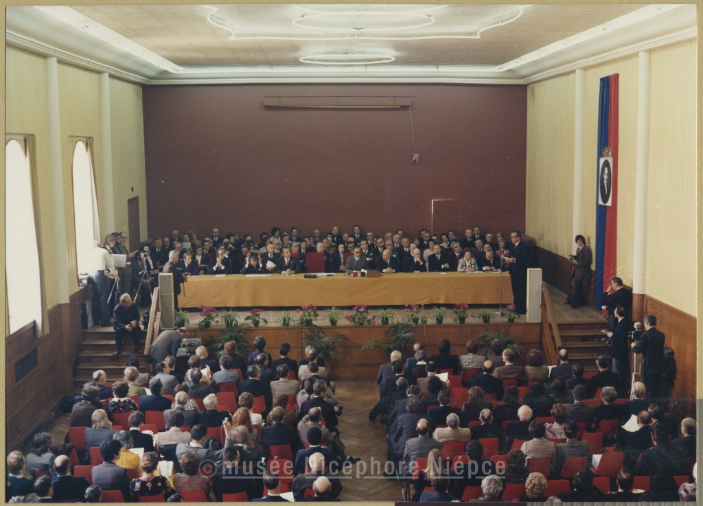 150ème anniversaire de l'invention de la photographie par le chalonnais Nicéphore Niépce Séance solennelle du 8 Avril 1972 à la Salle des Fêtes de l'Hôtel de Ville Allocution de M. Patault Préfet de S. et L.