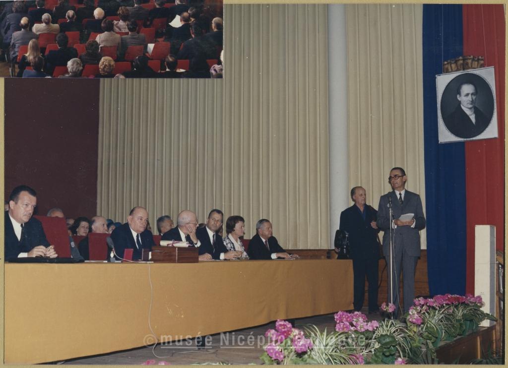 150ème anniversaire de l'invention de la photographie par le chalonnais Nicéphore Niépce Séance solennelle du 8 Avril 1972 à la Salle des Fêtes de l'Hôtel de Ville allocution de M. Lagrange Maire de Chalon sS