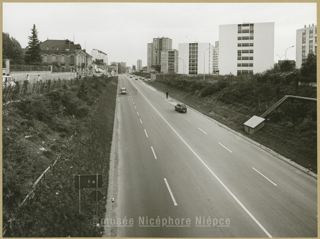 L'Axe Nord-Sud, avenue du 8 Mai 1945, vue prise du pont Garabaldi, avec les immeubles en construction à l'ouest Octobre 1972