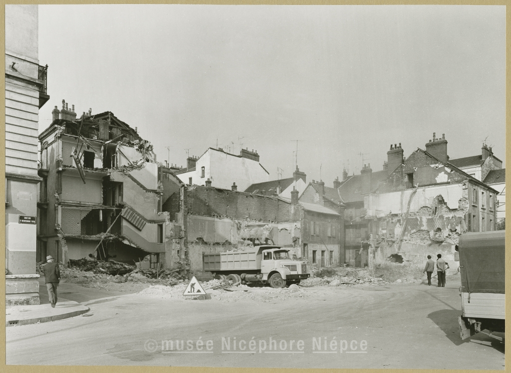 Aménagements du Quartier St-Cosme : les démolitions en bordure de la rue du 11 Novembre 1918 Octobre 1973