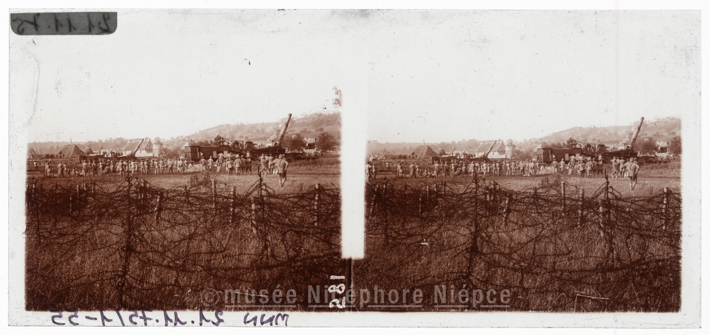 Régiment et pièces d'artillerie dans un village