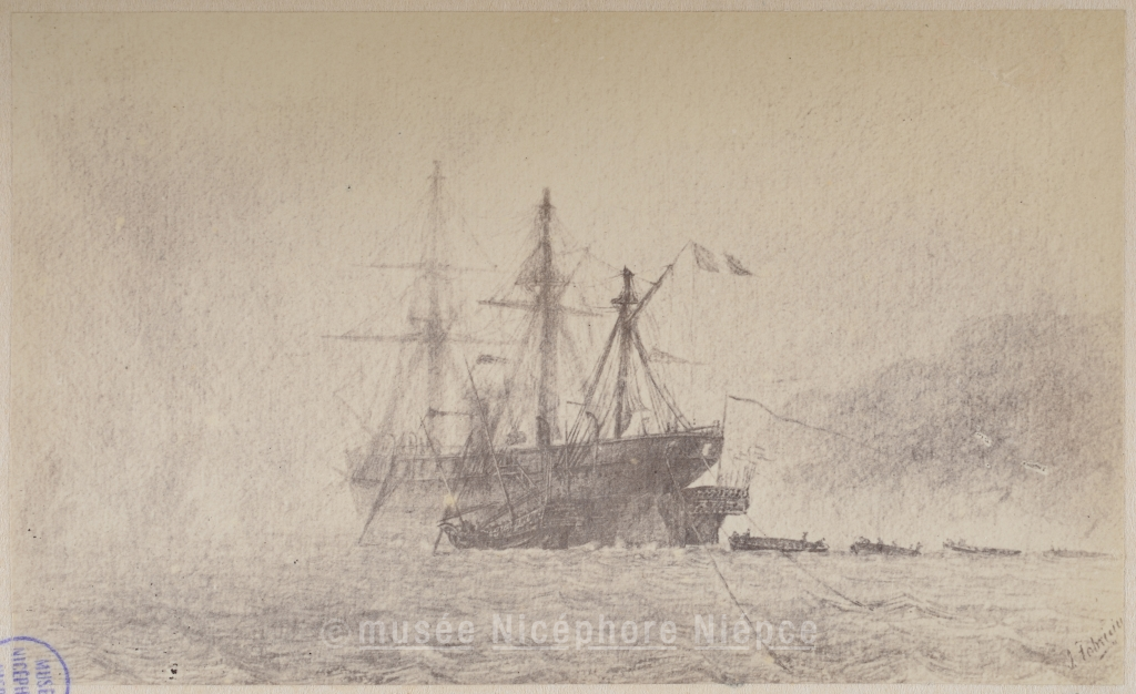 représentation d'objet - français - dessin - grand voilier - canot - mer - pavillon - petit voilier - Antonio-Felice BEATO - Hikoma UENO