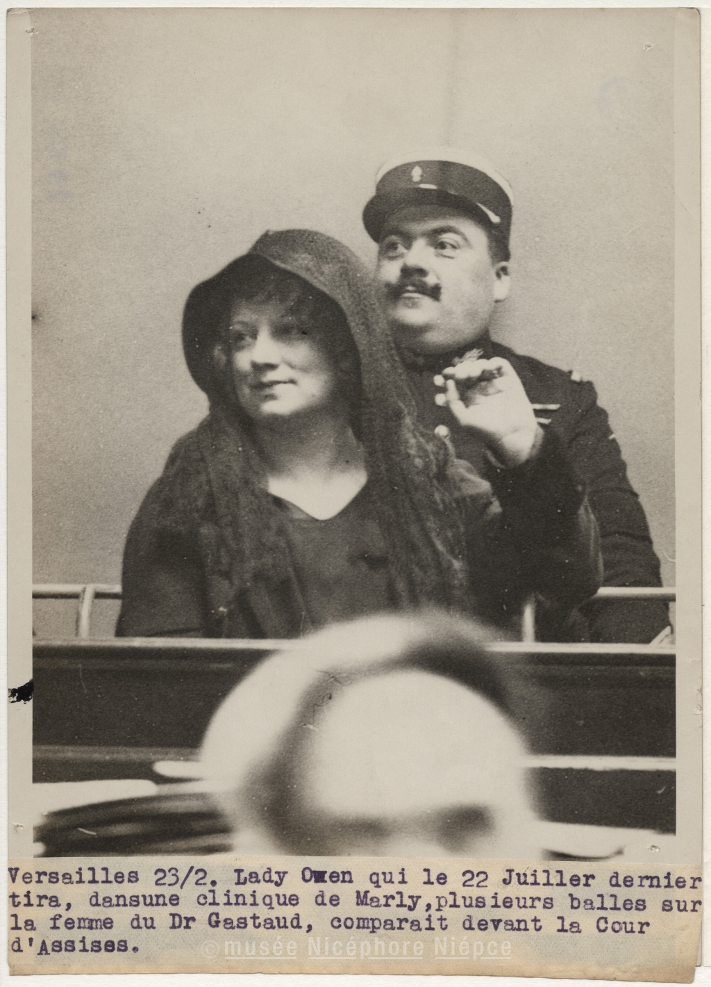 Versailles 23 Février 1931. Lady Owen qui le / 22 juillet dernier tire, dans une clinique de / Marly, plusieurs balles de révolver sur la / femme du Docteur Gastaud, comparait devant / la Cour d'Assises. / Lady Owen photographiée au début de l'audience