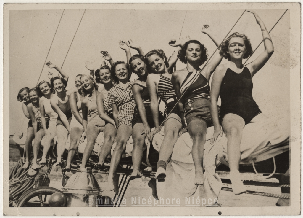 Pin-ups à califourchon sur le mât d'un bateau