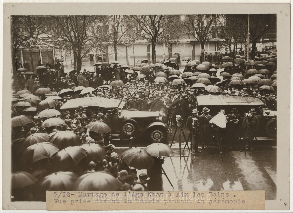 7 décembre 1929. Mariage de l'Aga Khan à Aix les Bains / vue prise devant la Mairie d'Aix les Bains pendant la cérémonie