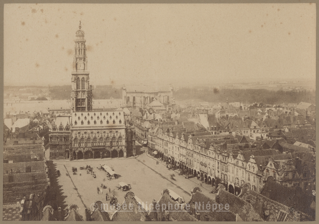 vue d'architecture - place - cadre urbain - vu d'en haut - beffroi - - marché - Arras
