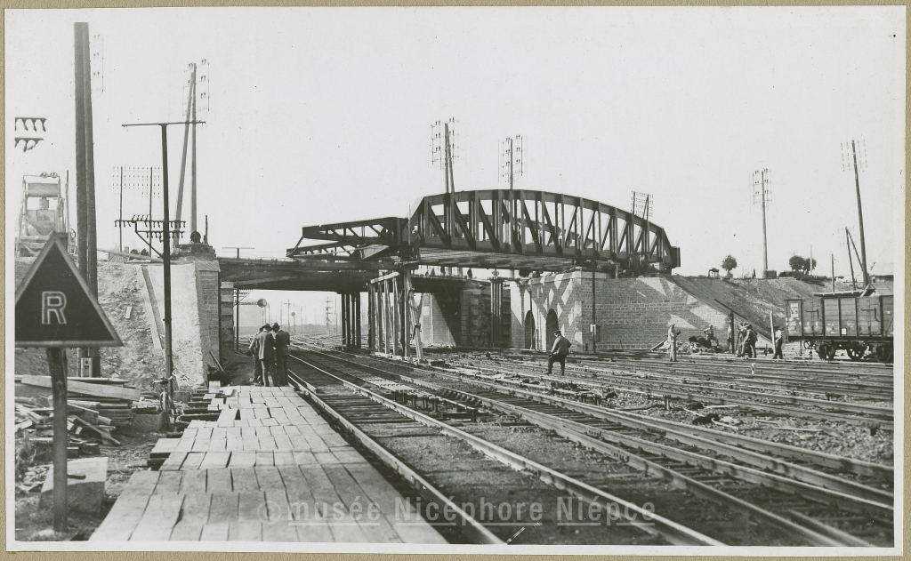 Lancement du pont de la route de Givry. Photographie prise un mois pus tard 3 octobre 1934