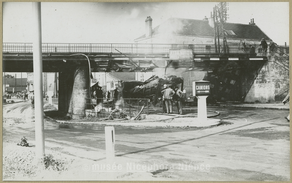 13 Juillet 1935 : un gros camion heurte le tablier du Pont des dombes, et prend feu...