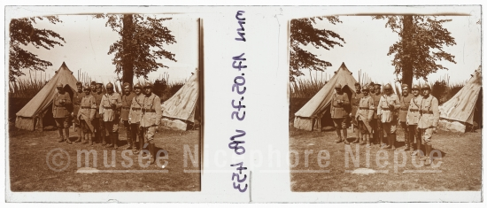 Soldats posant devant leur campement