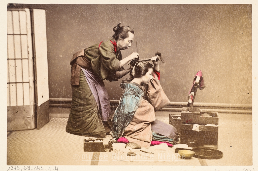 Femme japonaise réalisant une coiffure