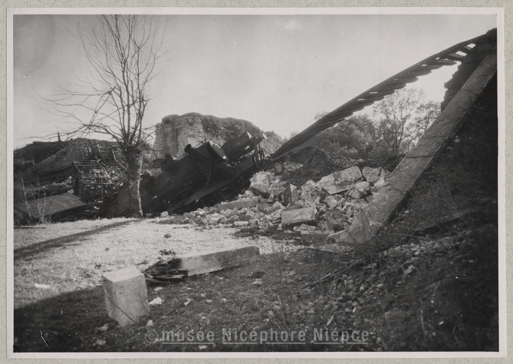 Destructions par les Allemands, le 4 Septembre 1944, des ponts du Chemin de fer des environs de Chalon : -...le pont sur la Grosne