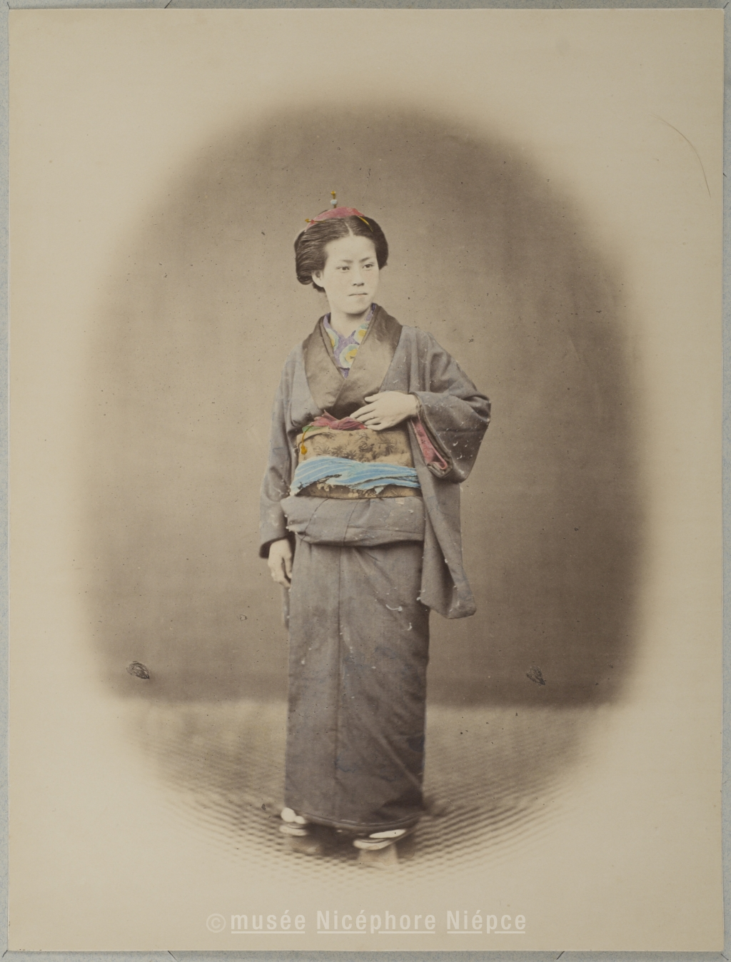 tirage sur papier albuminé, aquarellé - couleur