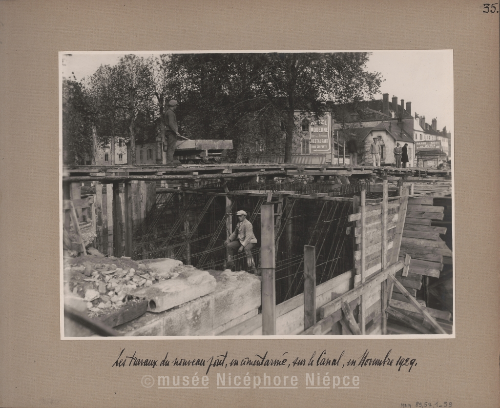Les travaux du nouveau pont, en ciment armé, sur le Canal, en Novembre 1929