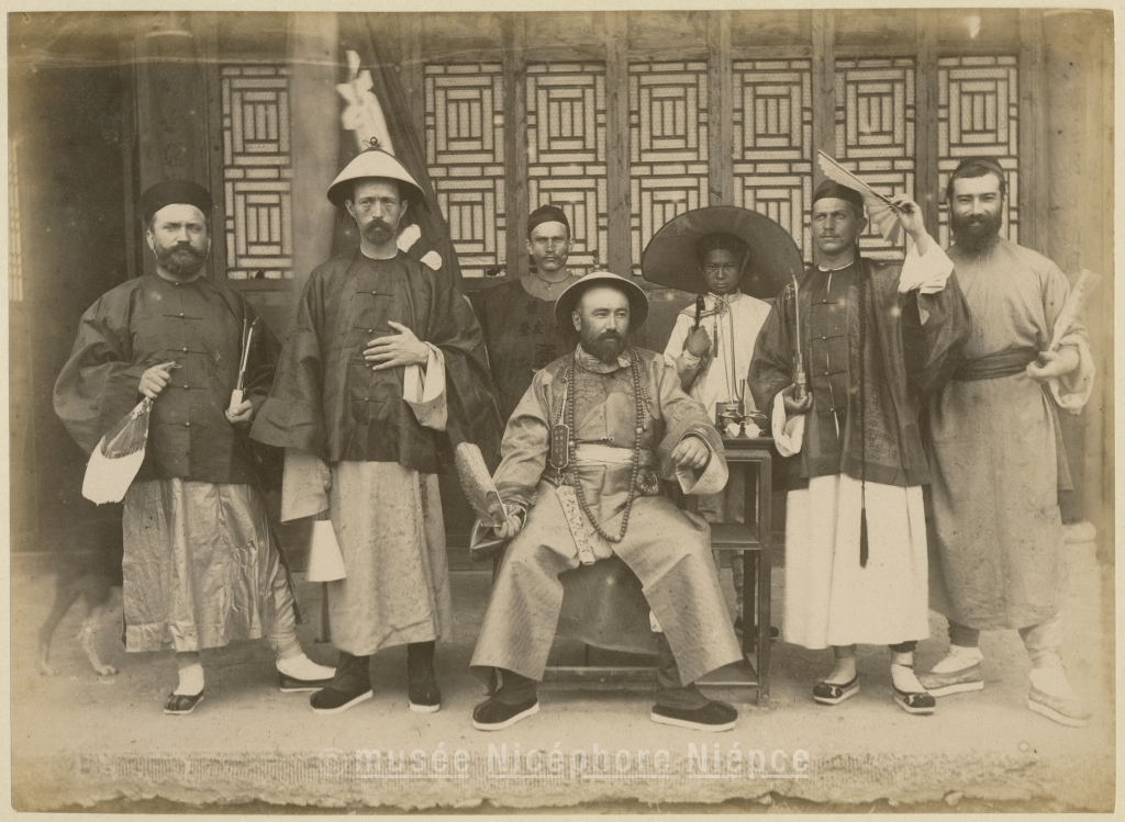 portrait collectif - déguisement - en pied - costume traditionnel - en pose - français - officier - Chine - chinois - PETHELLAZ