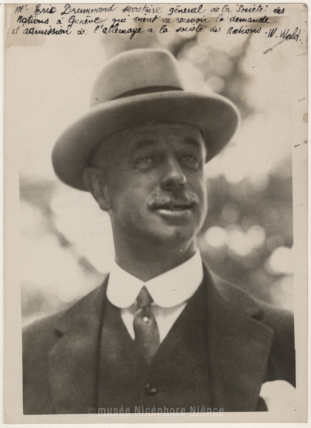 Monsieur Eric Drummond Secrétaire / Général de la Société des Nations / à Genève qui vient de recevoir la / demande d'admission de l'Allemagne à / la Société des Nations