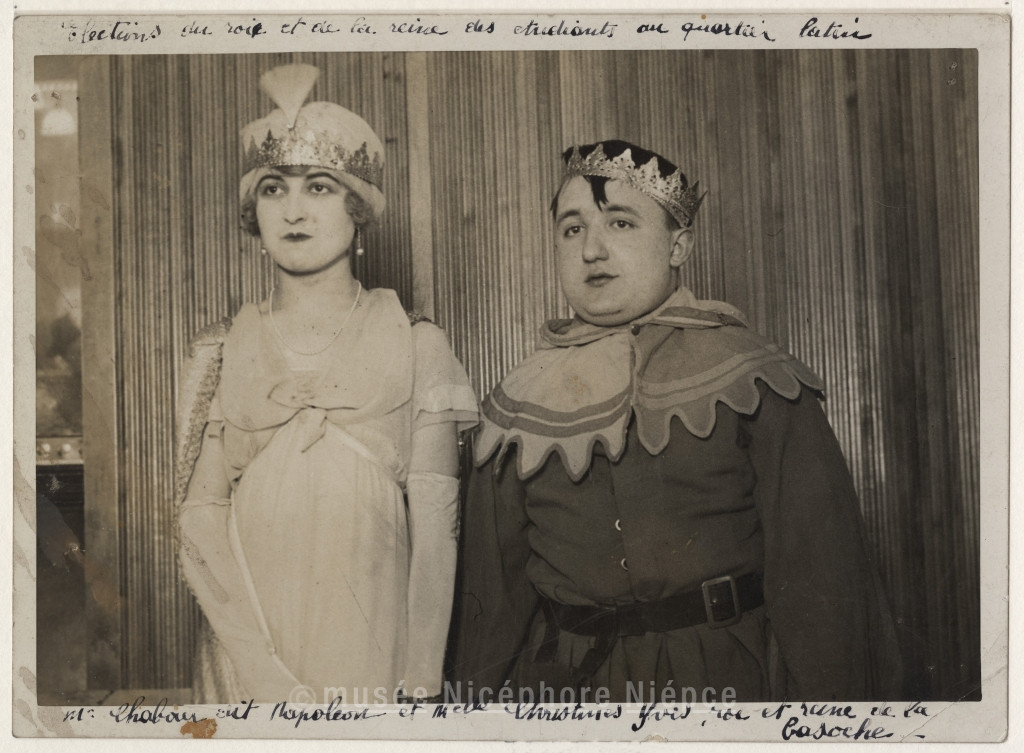 Elections du roi et de la reine des étudiants au quartier latin. Mr Chabour dit Napoleon et Melle Christines Yves roi et reine de la basoche