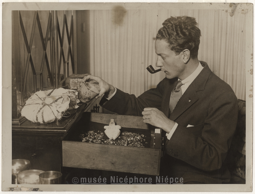 Portrait du Comte de Prorok, montrant quelques objets trouvés lors de ses expéditions