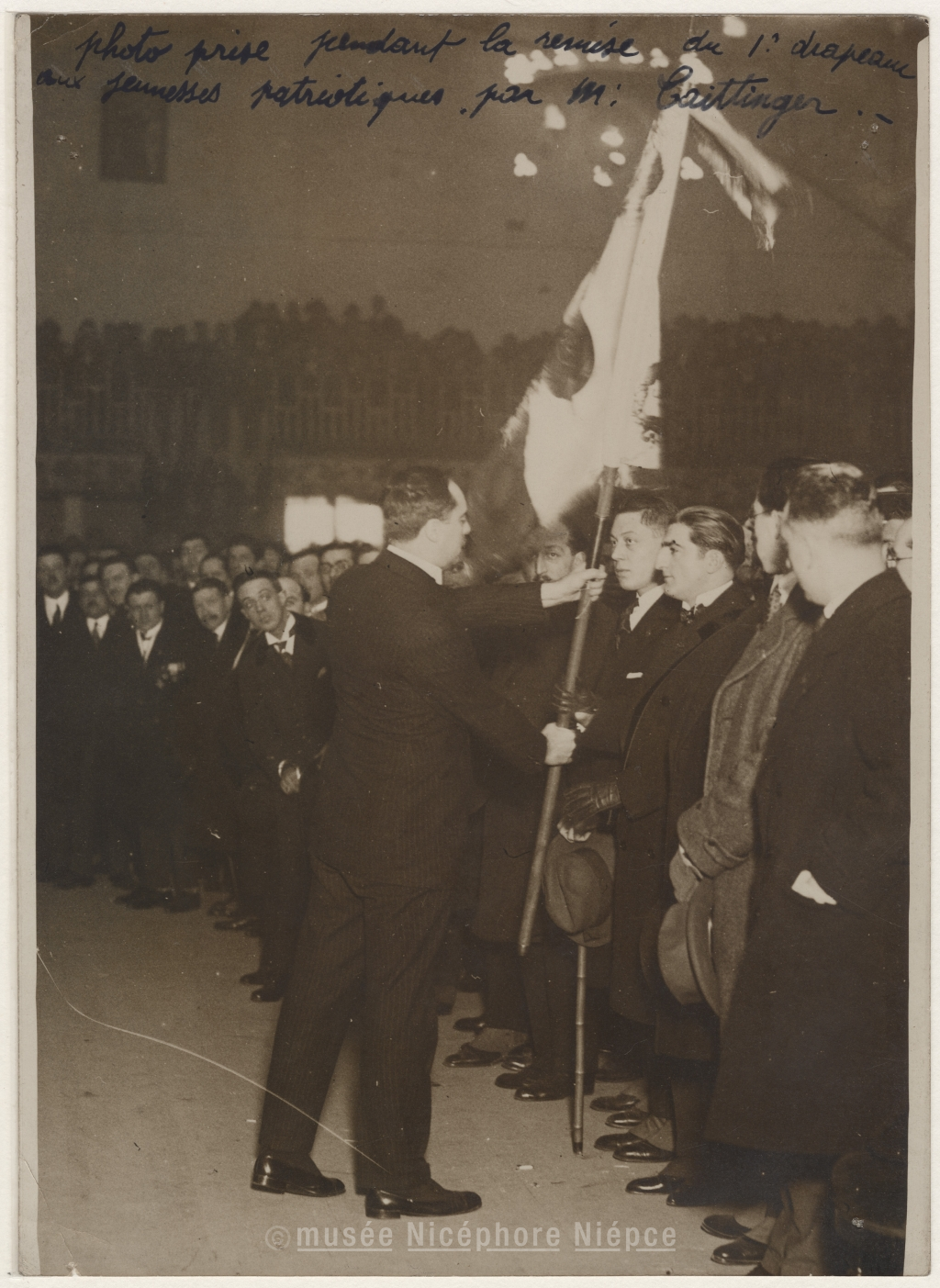 Paris. Réunion des jeunesses Patriotes / La légion à Luna-Park - photo prise pendant / la remise du premier drapeau aux jeunesses patriotes / par M. Taittinger