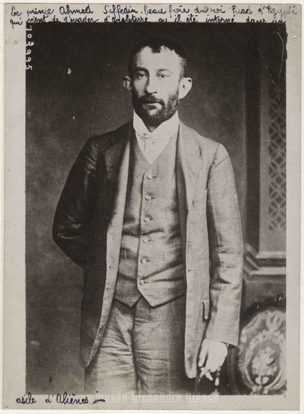 Le Prince Ahmed Seffedey, beau frère du / roi Fuad d'Egypte qui vient de s'évader / d'Angleterre où il était interné dans un asile d'aliénés