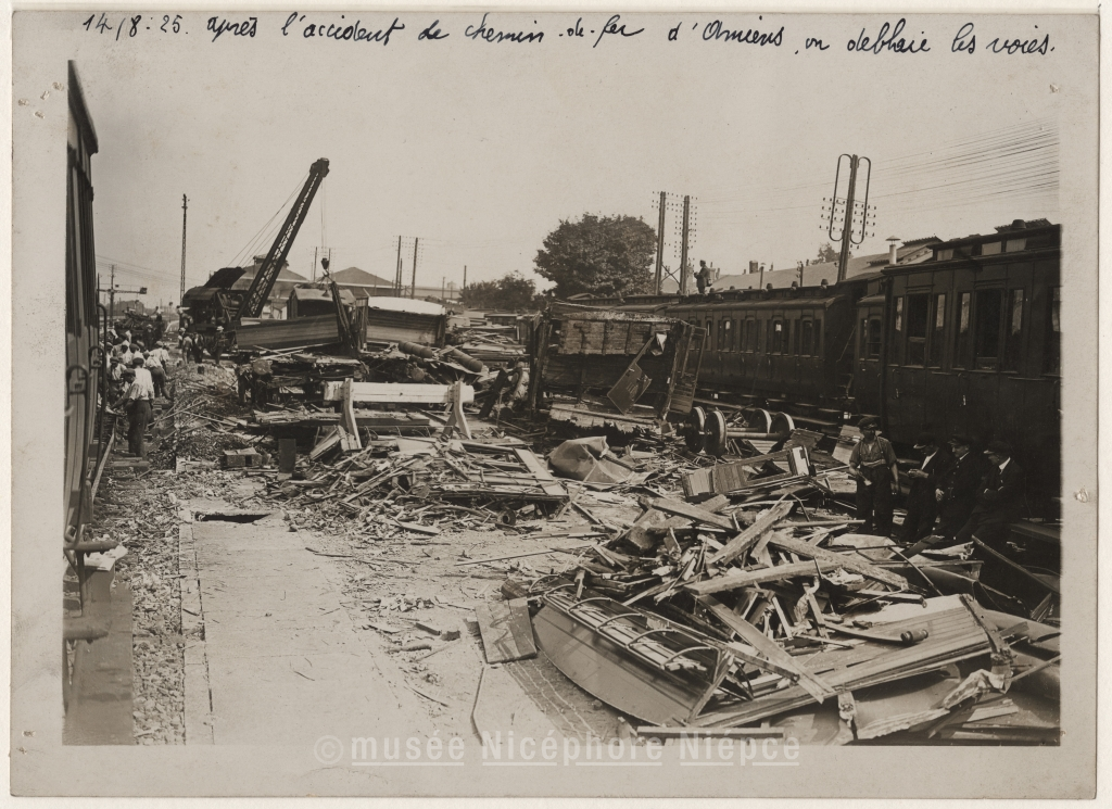 Après l'accident de chemin de fer / d'Amiens on déblaie les gravats