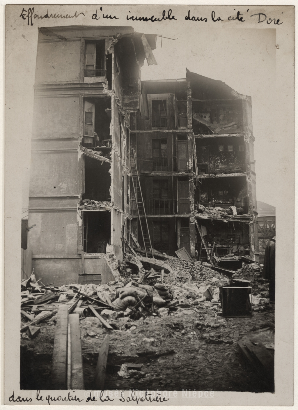 Effondrement d'un immeuble / de la Cité Doré dans le quartier de la Salpétrière